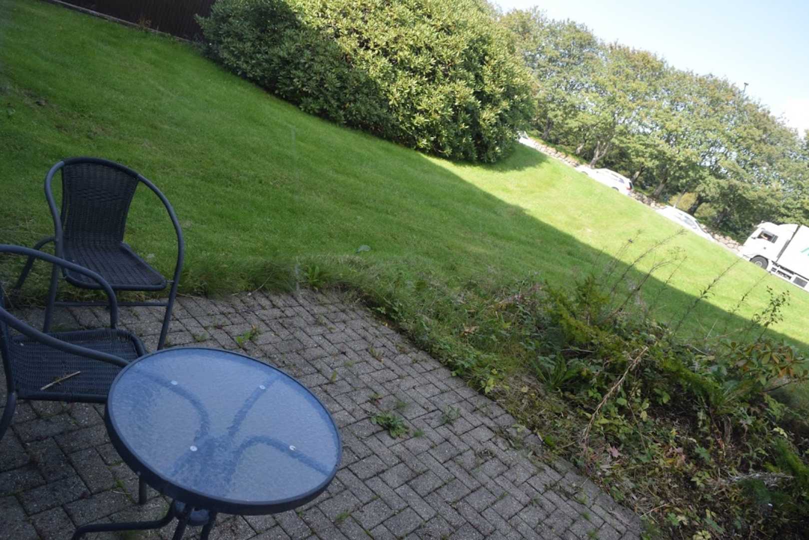 Blick von der Terrasse unseres Zimmers auf die Straße...