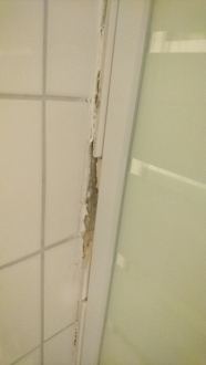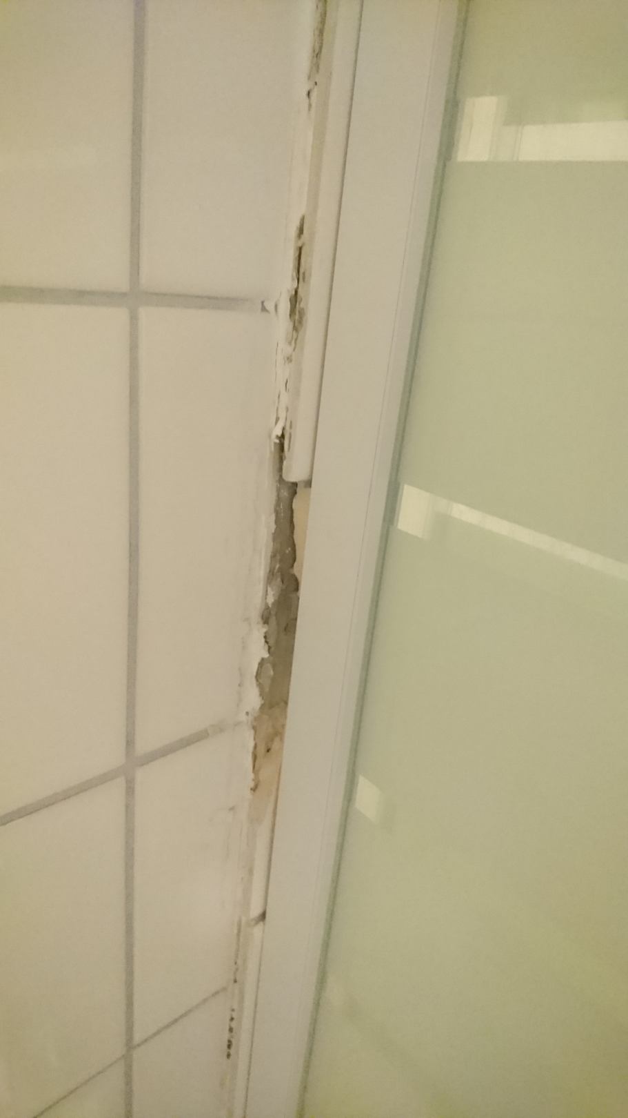 ZimmerDusche mit defekten Fliesen
