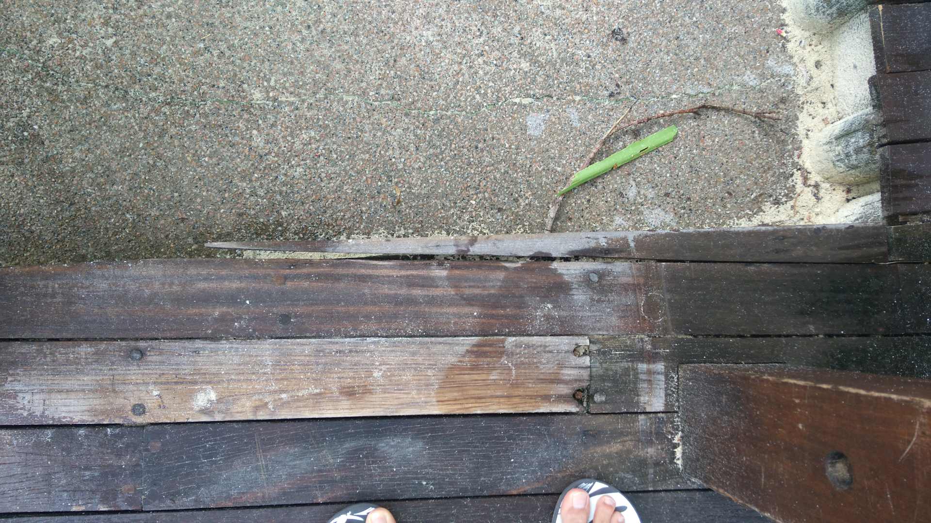 Strandzugang lose scharfkantige Holzbretter