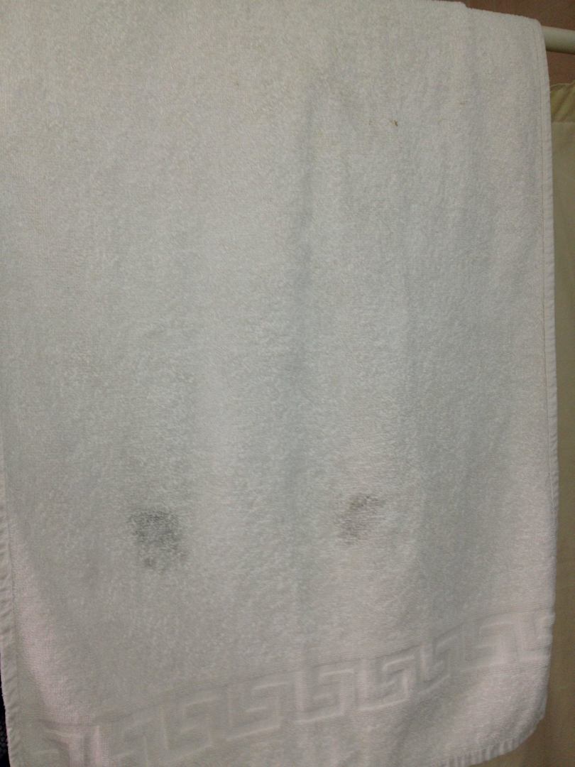 Frisches Handtuch mit schwarzen Flecken.