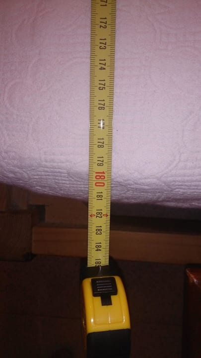 Flacalco Park Zi. 200B180cm lang das Bett.. Keine Chance mit 2 Personen in einem Bett mit den Maßen 1,35x1,80m anständig zu schlafen.