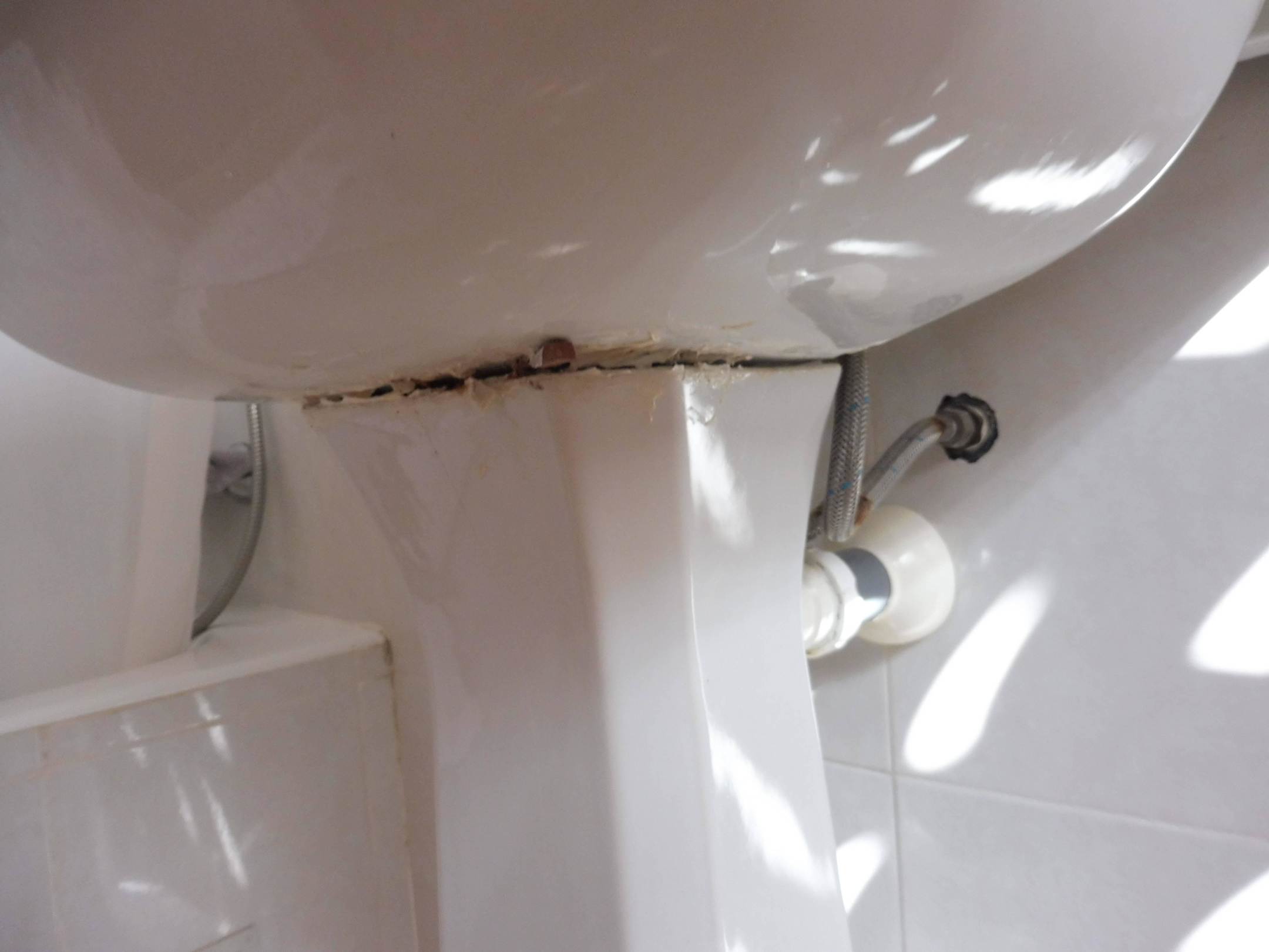 Waschbecken mit Schimmeliegen Rückständen mit Silikon behaftet