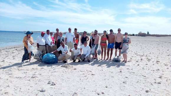 Gäste und Angestellte säubern den Strand