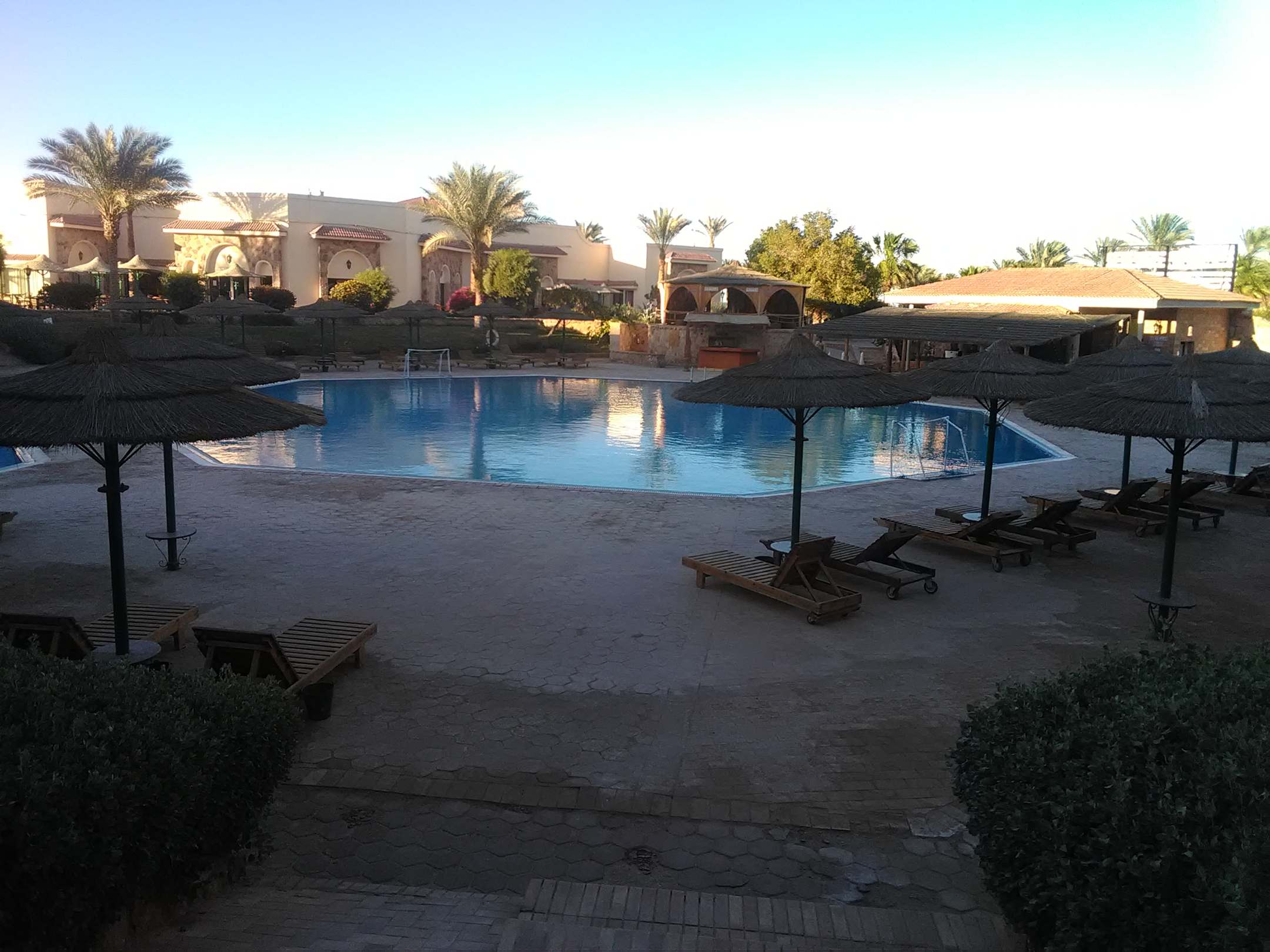 Poolanlage am Abend