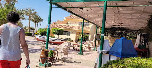 Hier wird Eis und Shisha angeboten. Eiscrememann schreit sehr laut jeden Tag. Shisha gibt es von 19-23Uhr jedoch war in der zweiten Woche nie ein Verkäufer da und konnte daher nicht genutzt werden