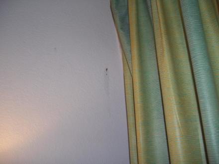 Fleck an Wand und Gardine