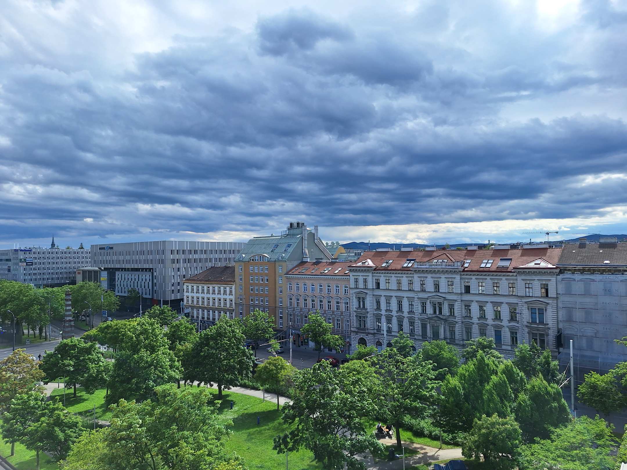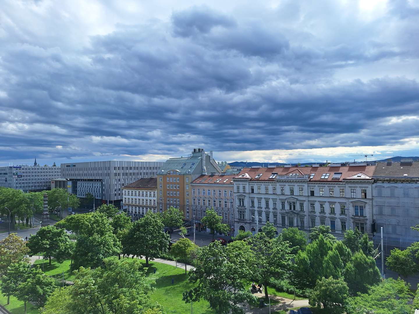 Ausblick vom 6.Stock auf den Gürtel (Durchzugsstrasse) und Park.