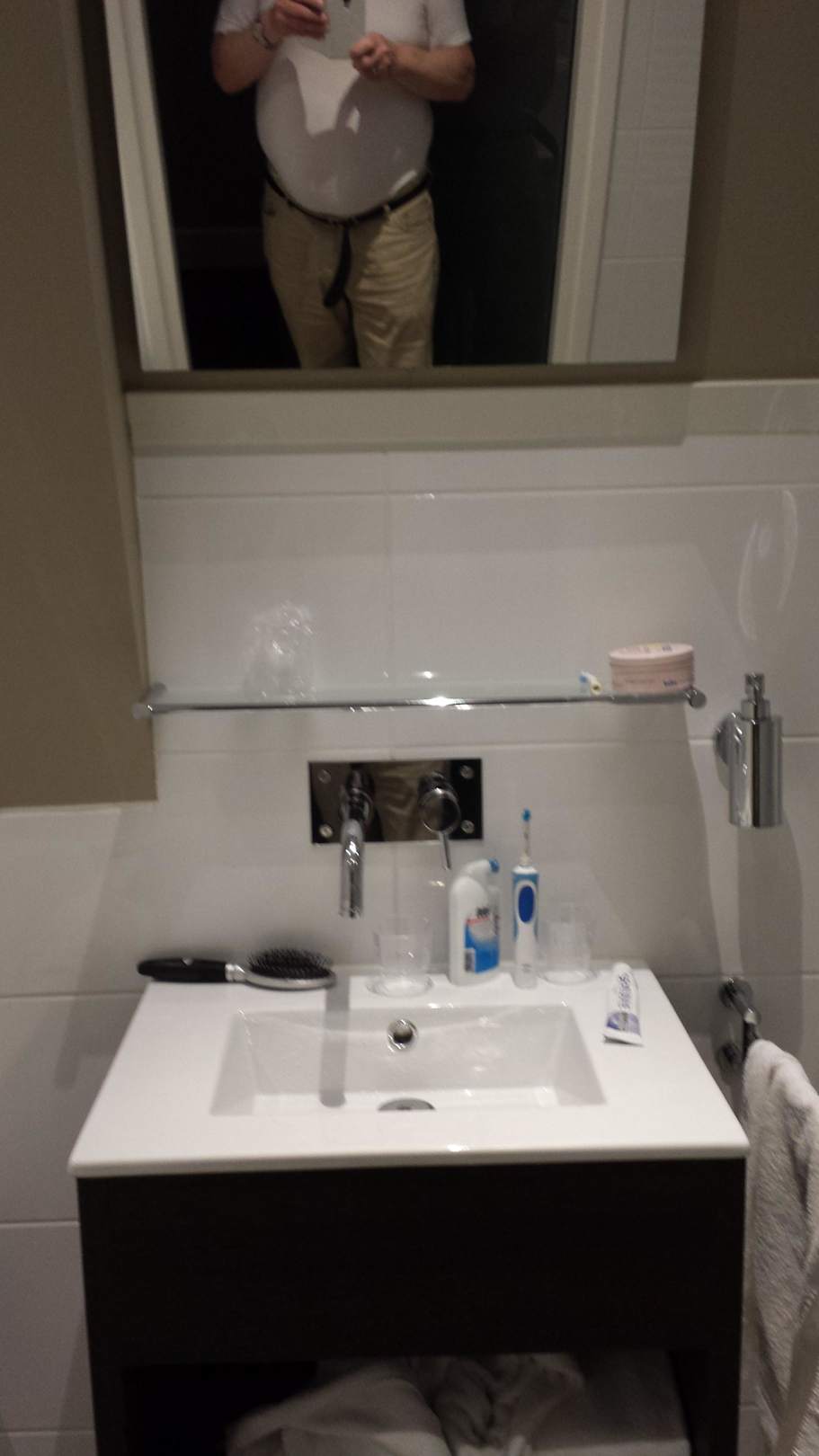 superkleines Waschbecken, keine Steckdose im Badezimmer, keinerlei Pflegeartikel ausser Seifenspender. Ist das 4 Sterne Standart?