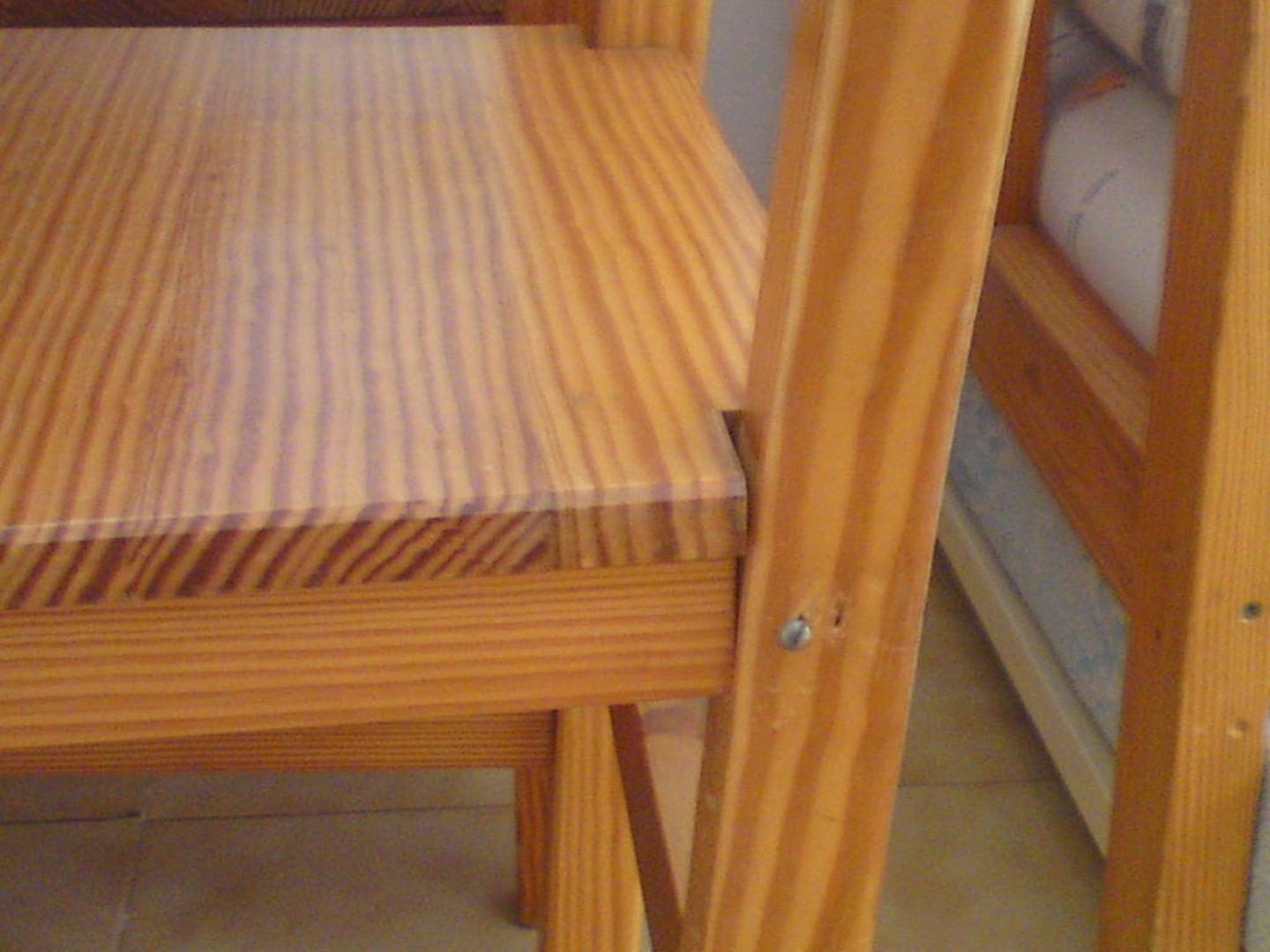 StuhlKippliger Stuhl notdürftig zusammengeschraubt.