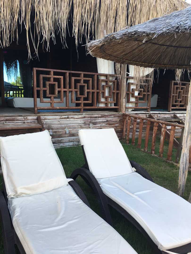 ZimmerRomantik Room: Eigene Terasse mit zwei Liegen und einem Sonnenschirm