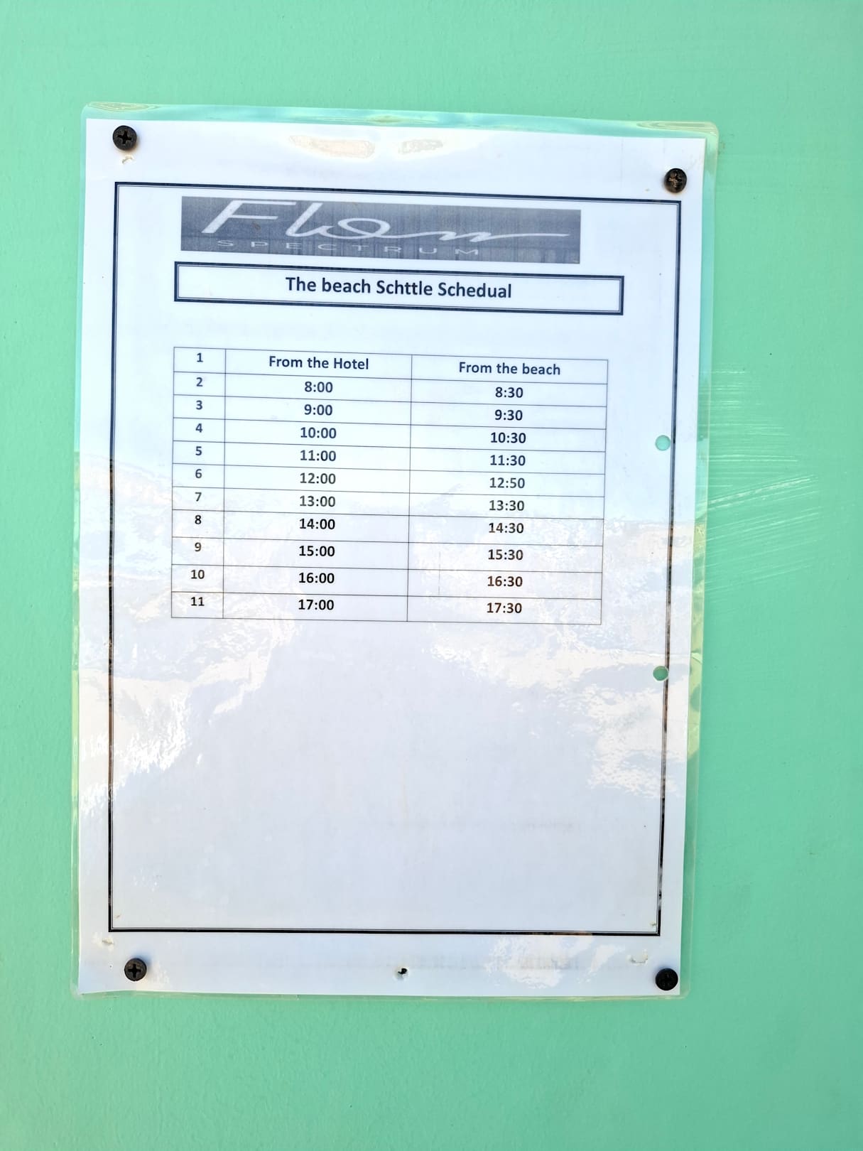 StrandShuttle-Bus zum Strand Fahrplan. In der Regel immer voll. Für die letzte Rückfahrt kamen daher immer zwei Busse zum Einsatz.