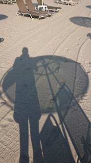 Ein Sonnenschirm am Strand der einen SCHLECHTEN Schatten spendet