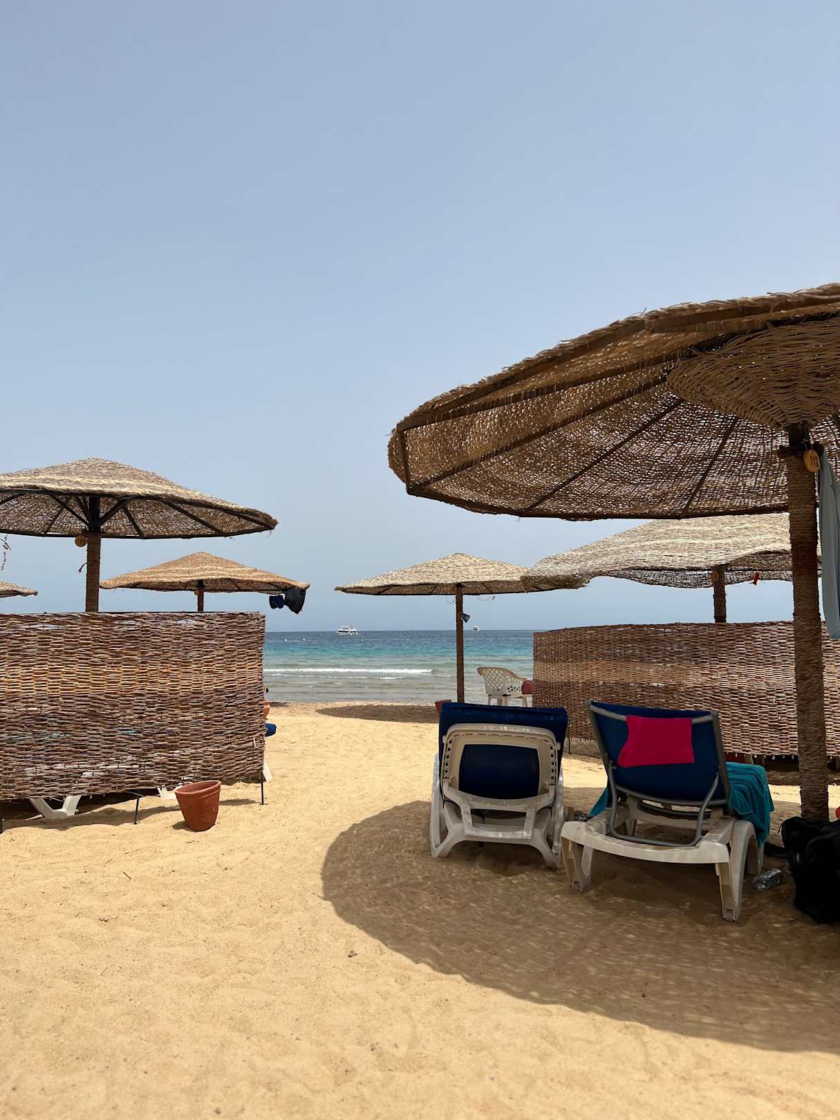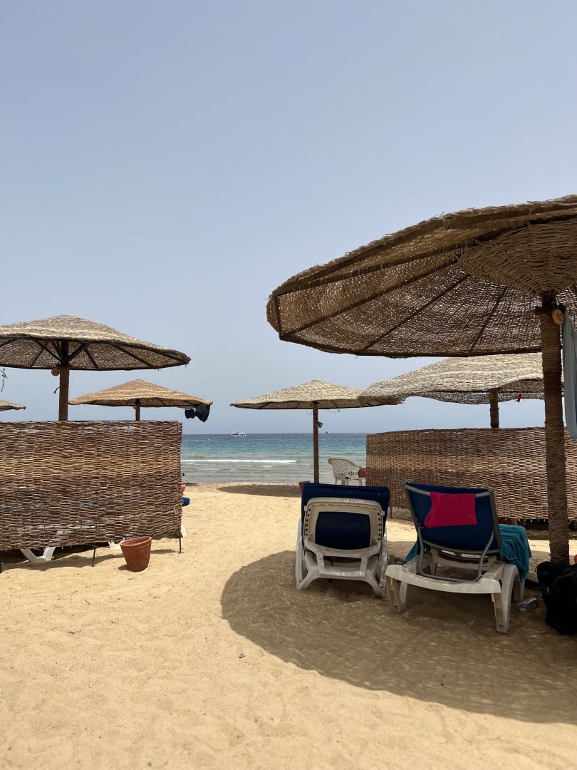 StrandZahlreiche Liegen und Schirme am Strand