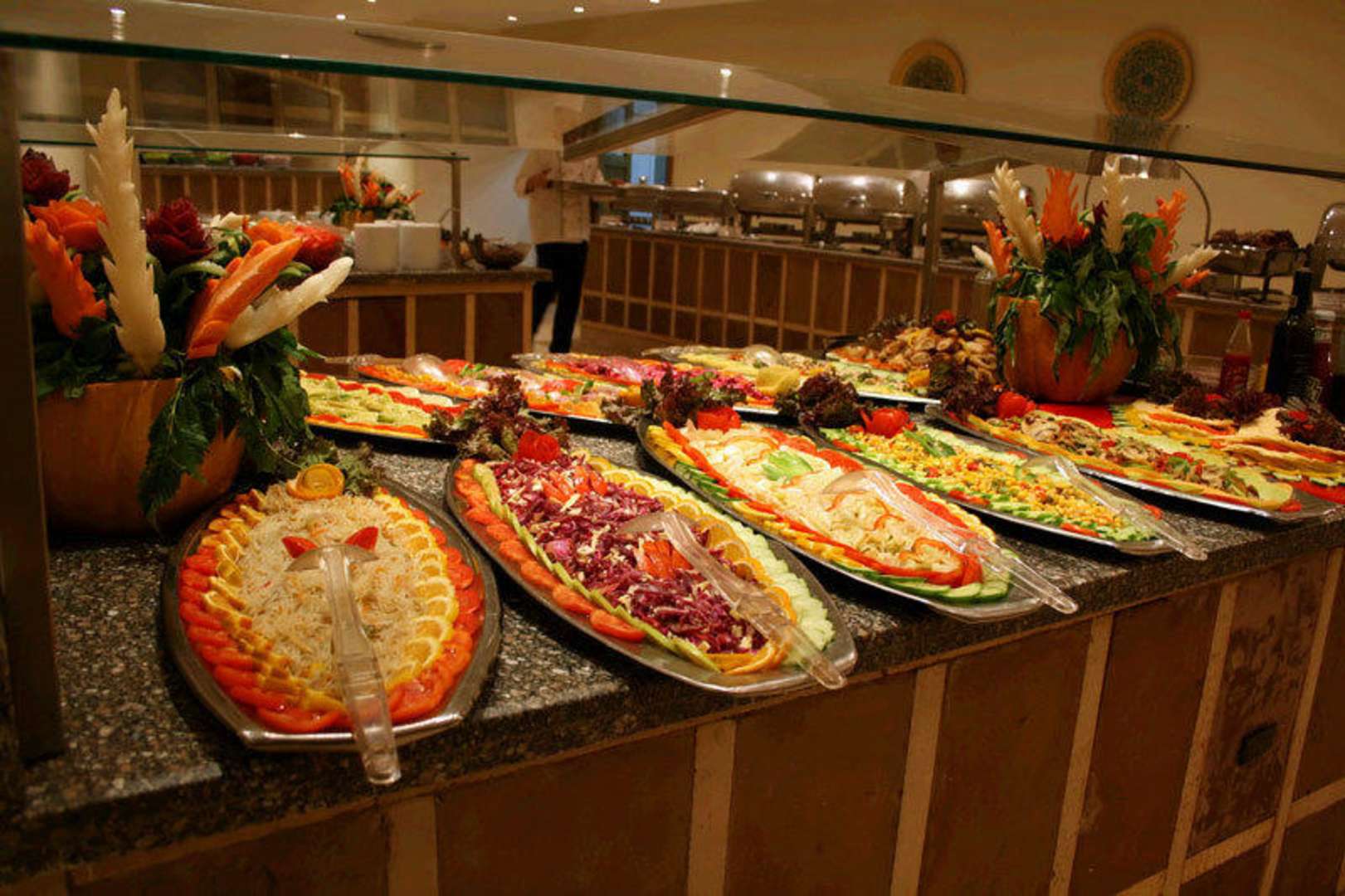 Die ist aber nur das Salatbüffet mit den fertigen Salaten, daneben gab es noch ein Büffet mit Blatt Salaten, Paprika, mais, Bohnen usw. was man sich selbst zusammen stellen kann mit vers. Dressings