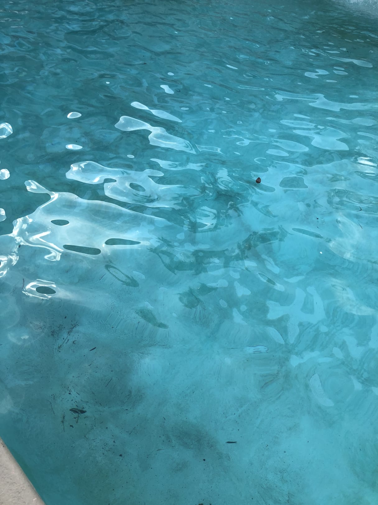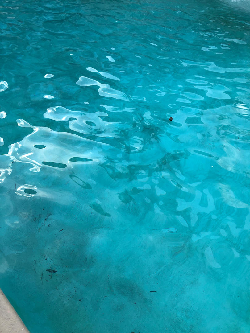 Ein sauberer Pool ist was anderes. Blätter und dreck am Boden, sowie trübes Wasser.