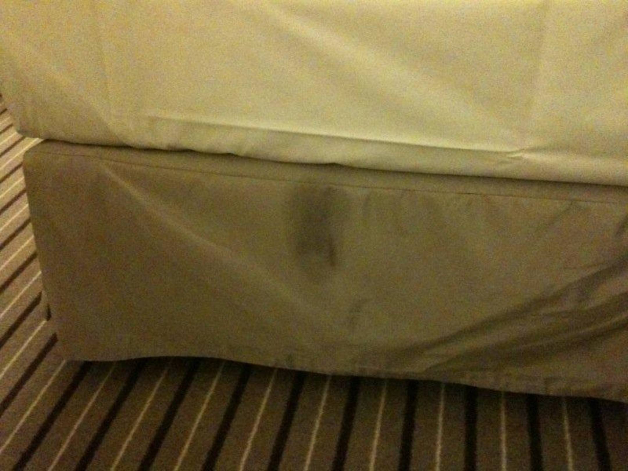 Riesiger Fettfleck auf dem Bett beim Bezug des Zimmers