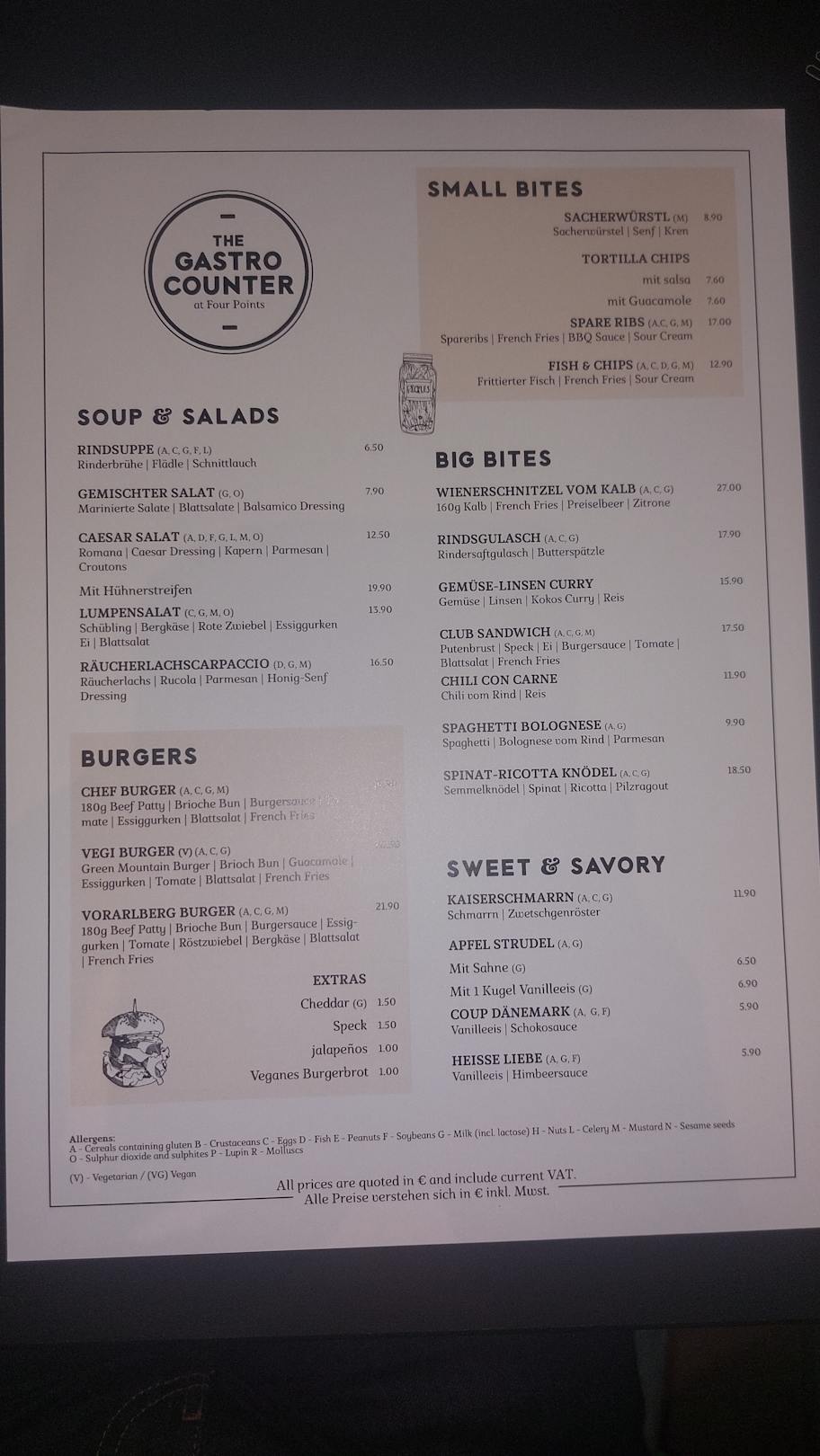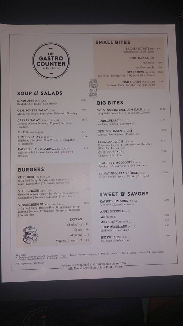 Die Speisekarte des Restaurants. Stand: Januar 2025.