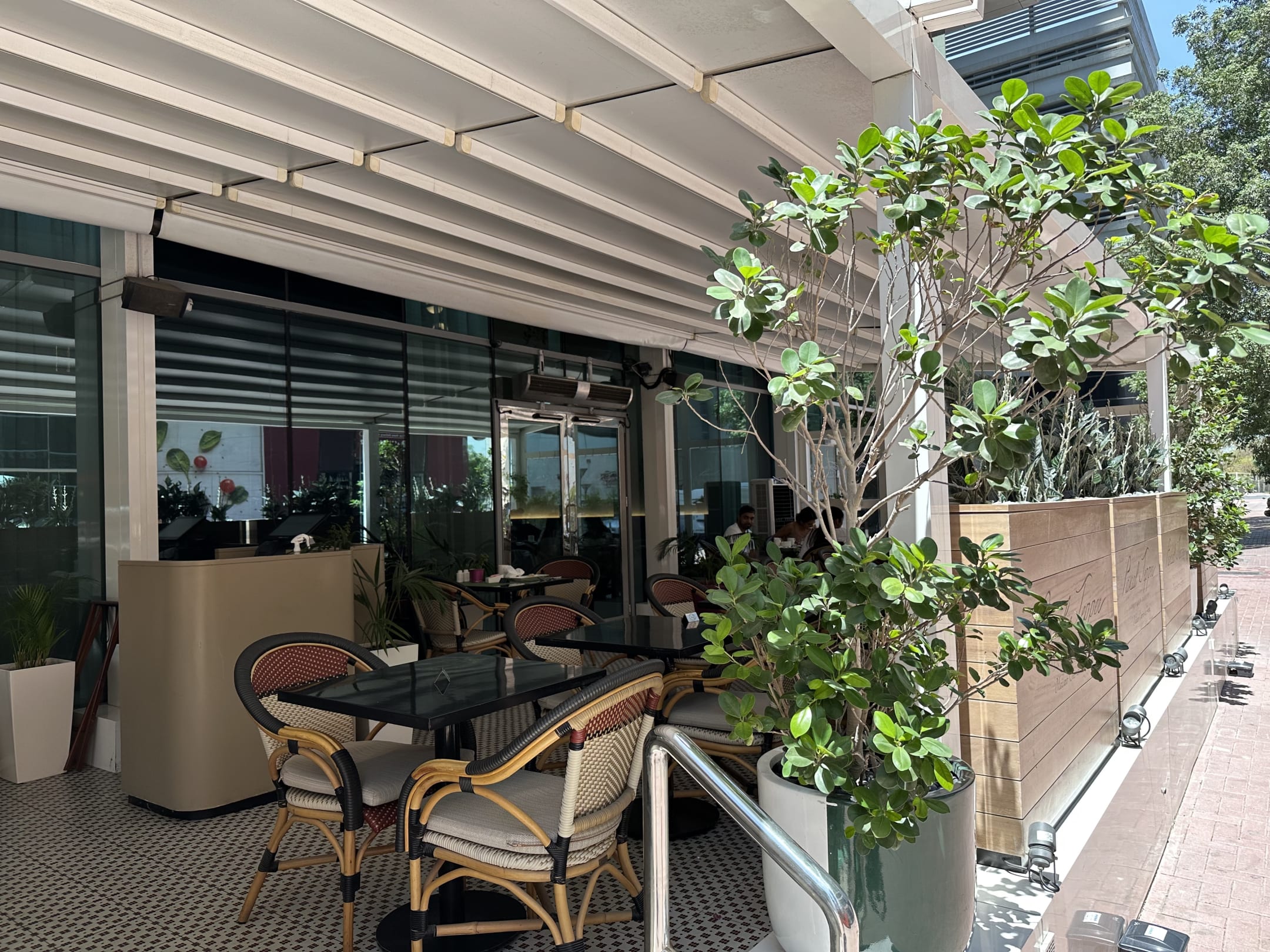 Außenbereich der Restaurants. Bei unserem Besuch war es allerdings zu heiß, um draußen zu sitzen.