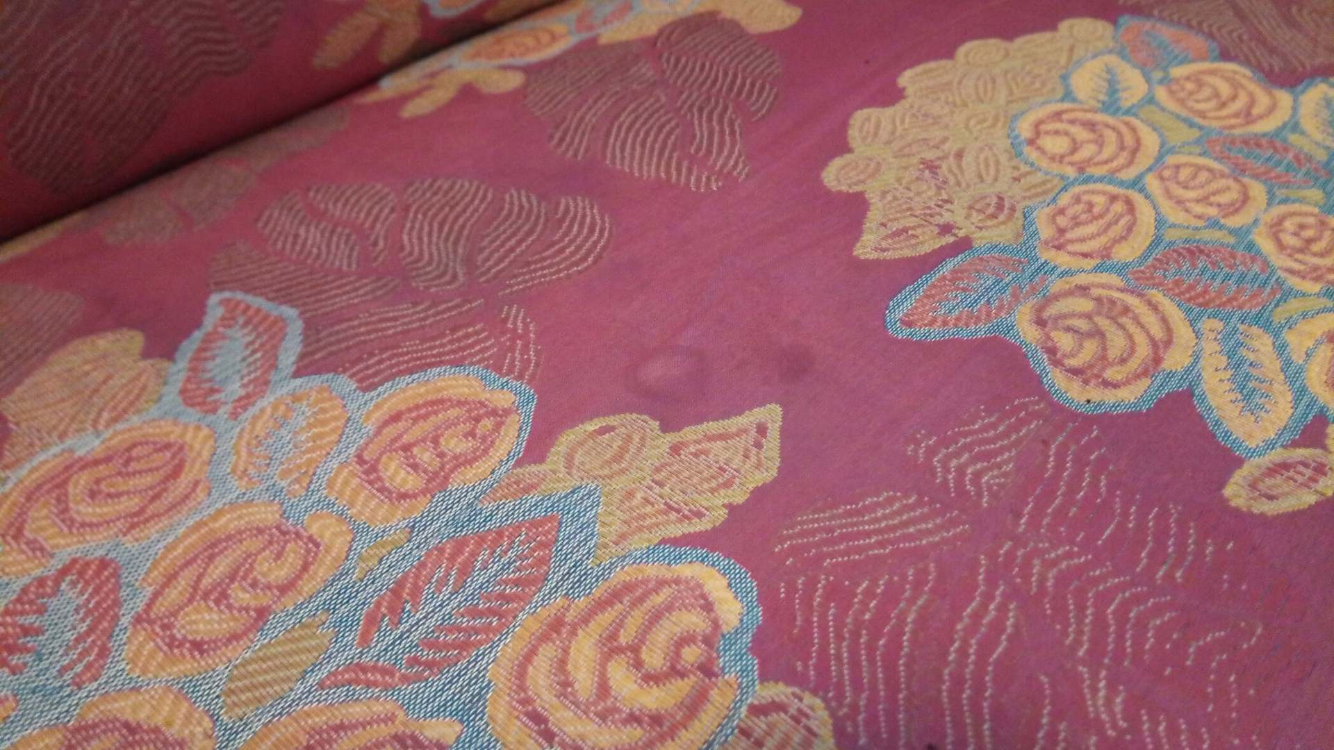 ZImmer 4.5: Das gesamte Sofa ist übersät von Flecken. Durch gesessen, speckig und nicht zu nutzen.
