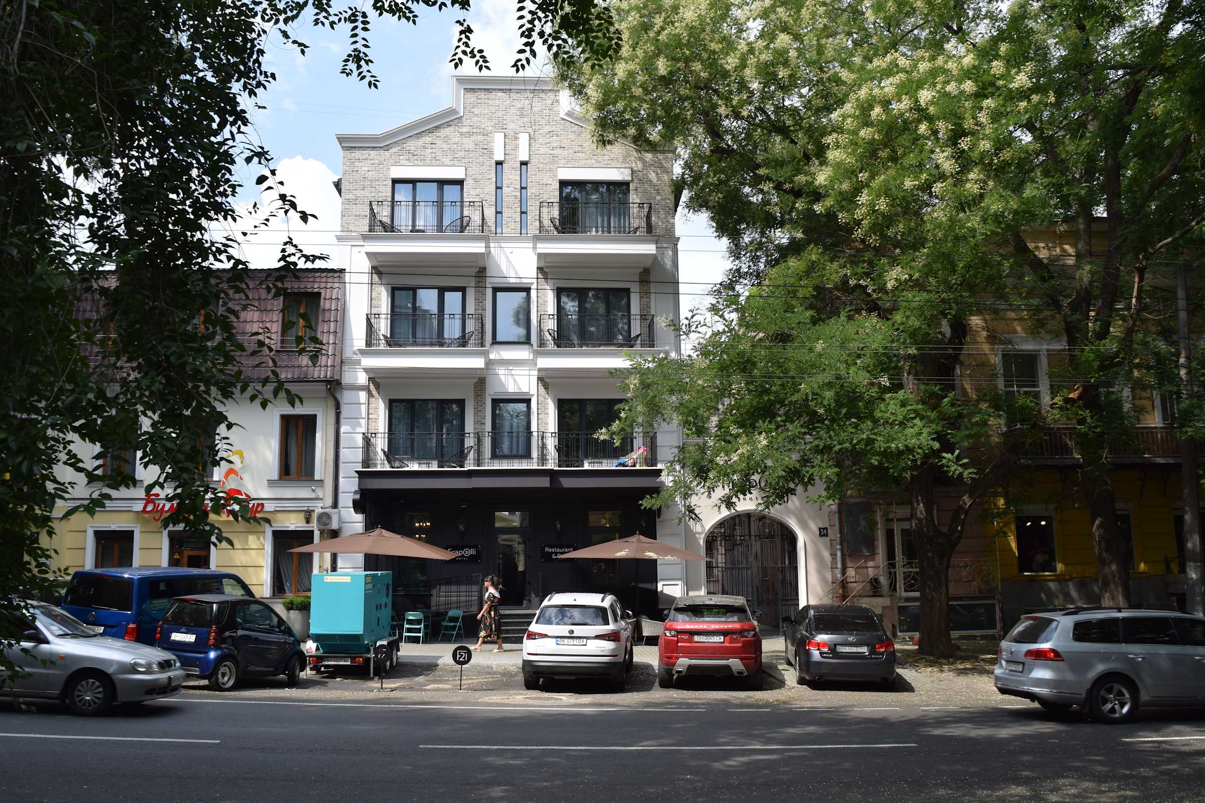 Hotelgebäude von der gegenüberliegenden Straße aus gesehen