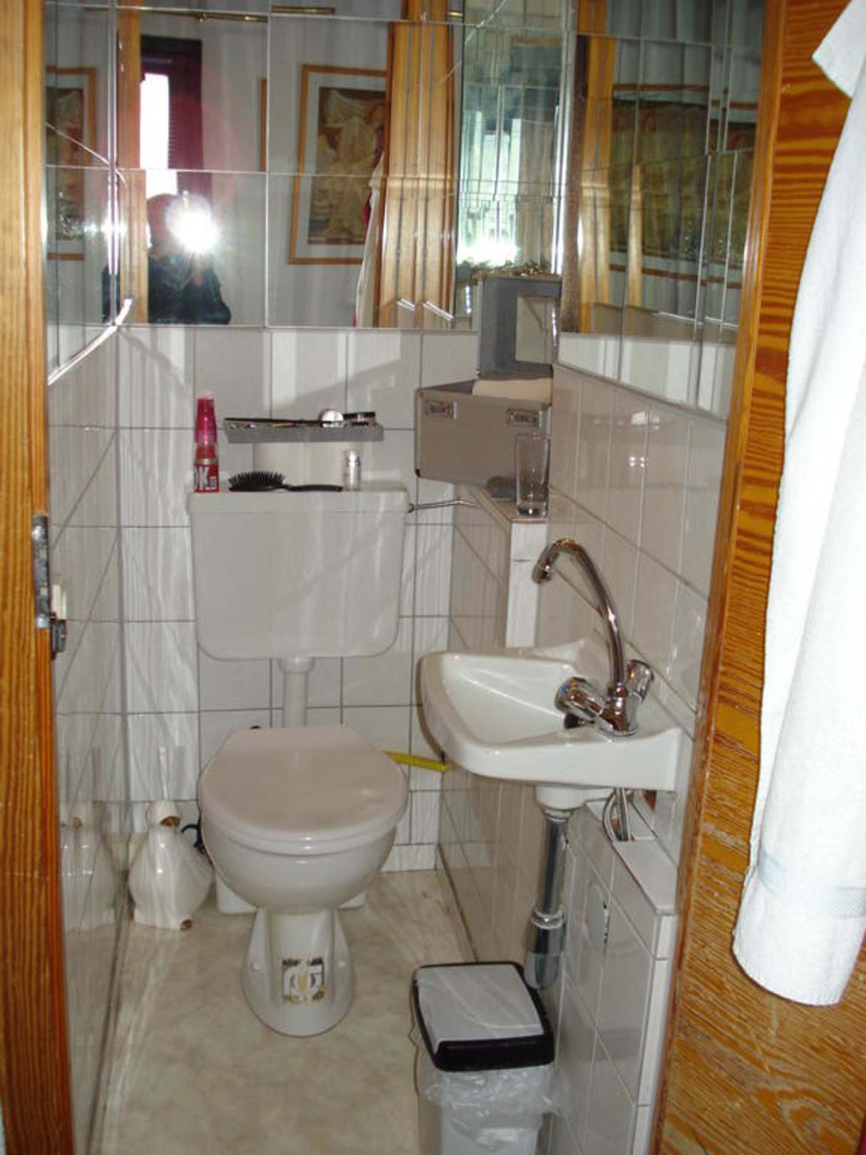 Sie sehen auf dem Foto die kleine Waschmöglichkeit, die Sie im Rapunzelturm vorfinden. Der Raum ist klein, schmal und sie werden kaum Abstellmoeglichkeiten für Kosemtika finden.