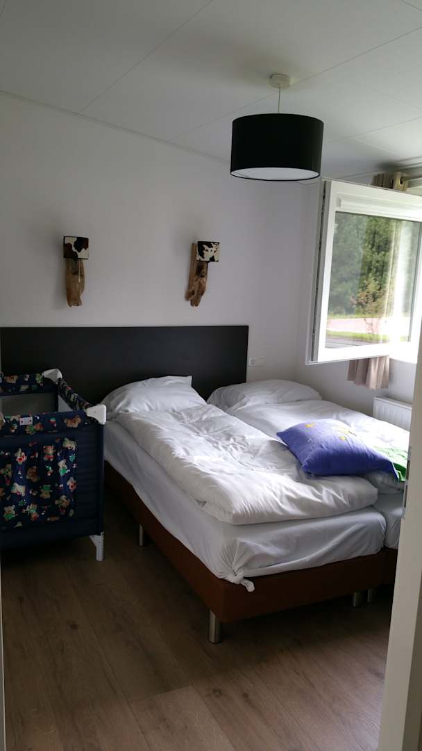 ZimmerElternschlafzimmer, Bett etwas zur seite gerückt wegen Babybett , das ist normal nicht mit in dem Zimmer wurde privat mitgebracht!