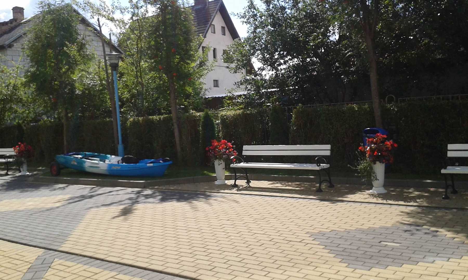 ławeczki jeszcze puste,wczasowicze na plaży:)