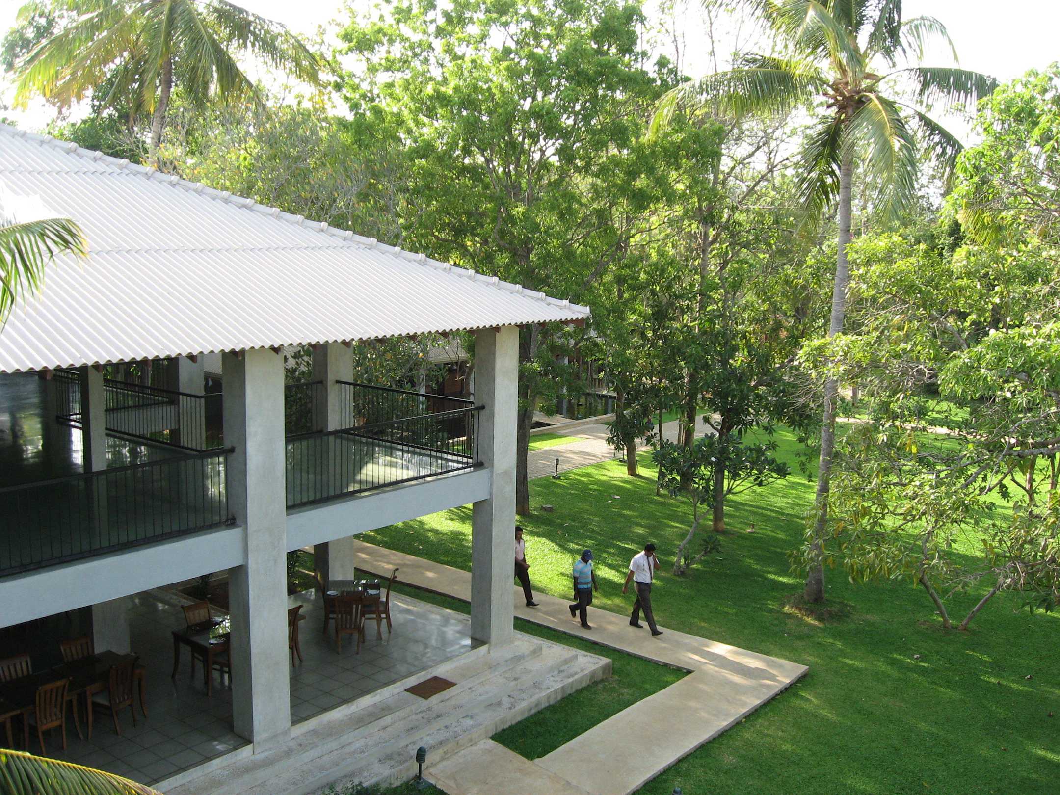 Blick vom Balkon zum Restaurant