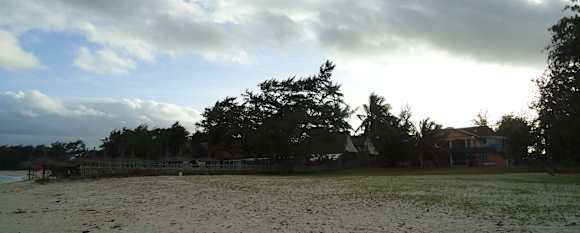 Links hinter dem Zaun die Hotelanlage