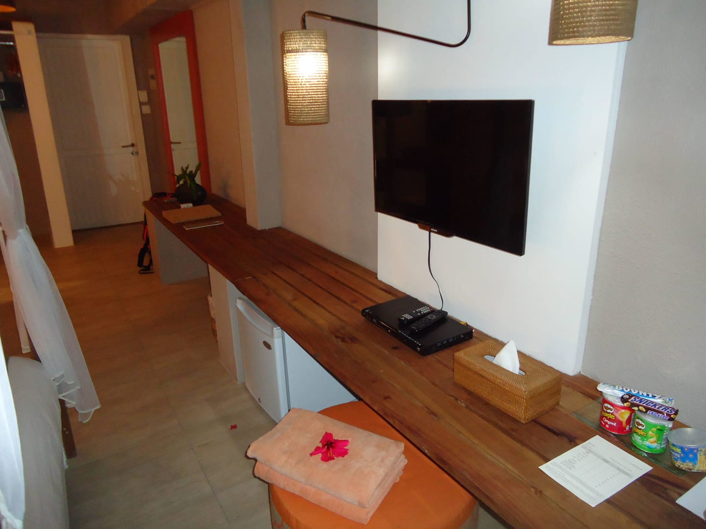 Regal, Flachbildschirm-TV, Kühlschrank, Hocker