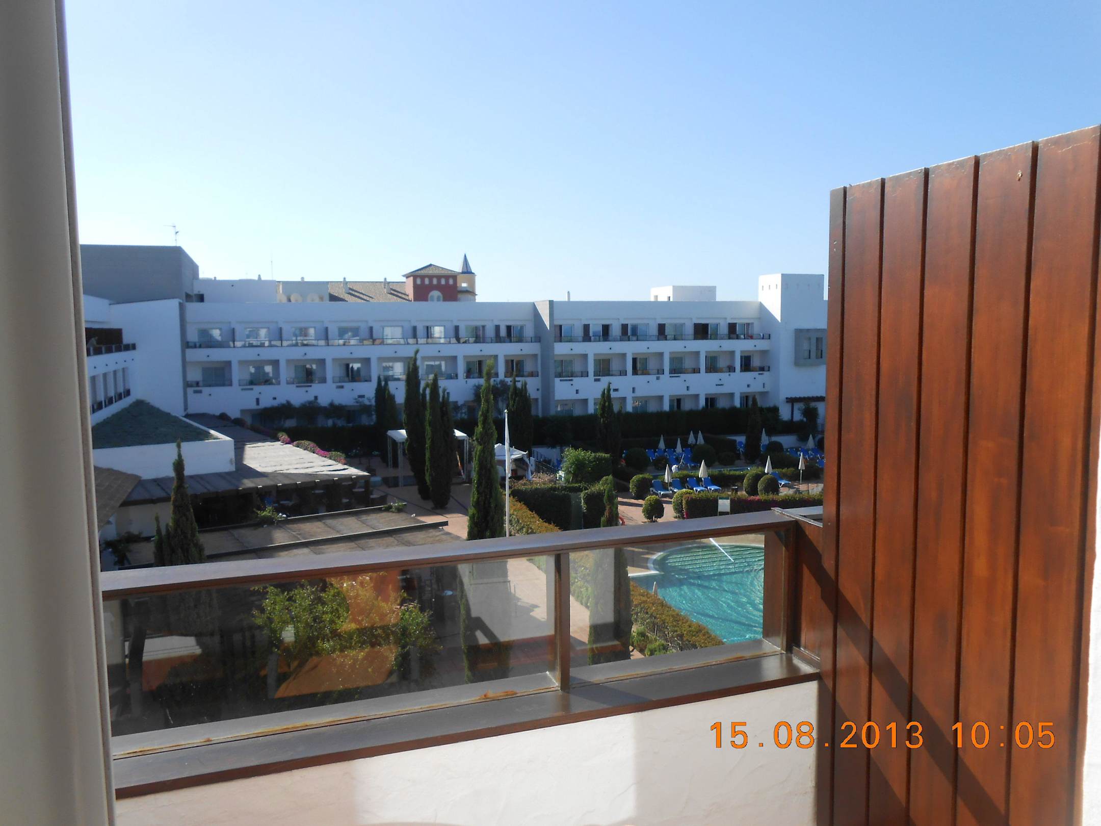 Blick vom Zimmer zum Pool