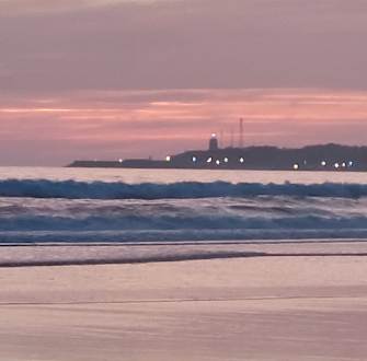Abends am Strand, Blick zum Hafen