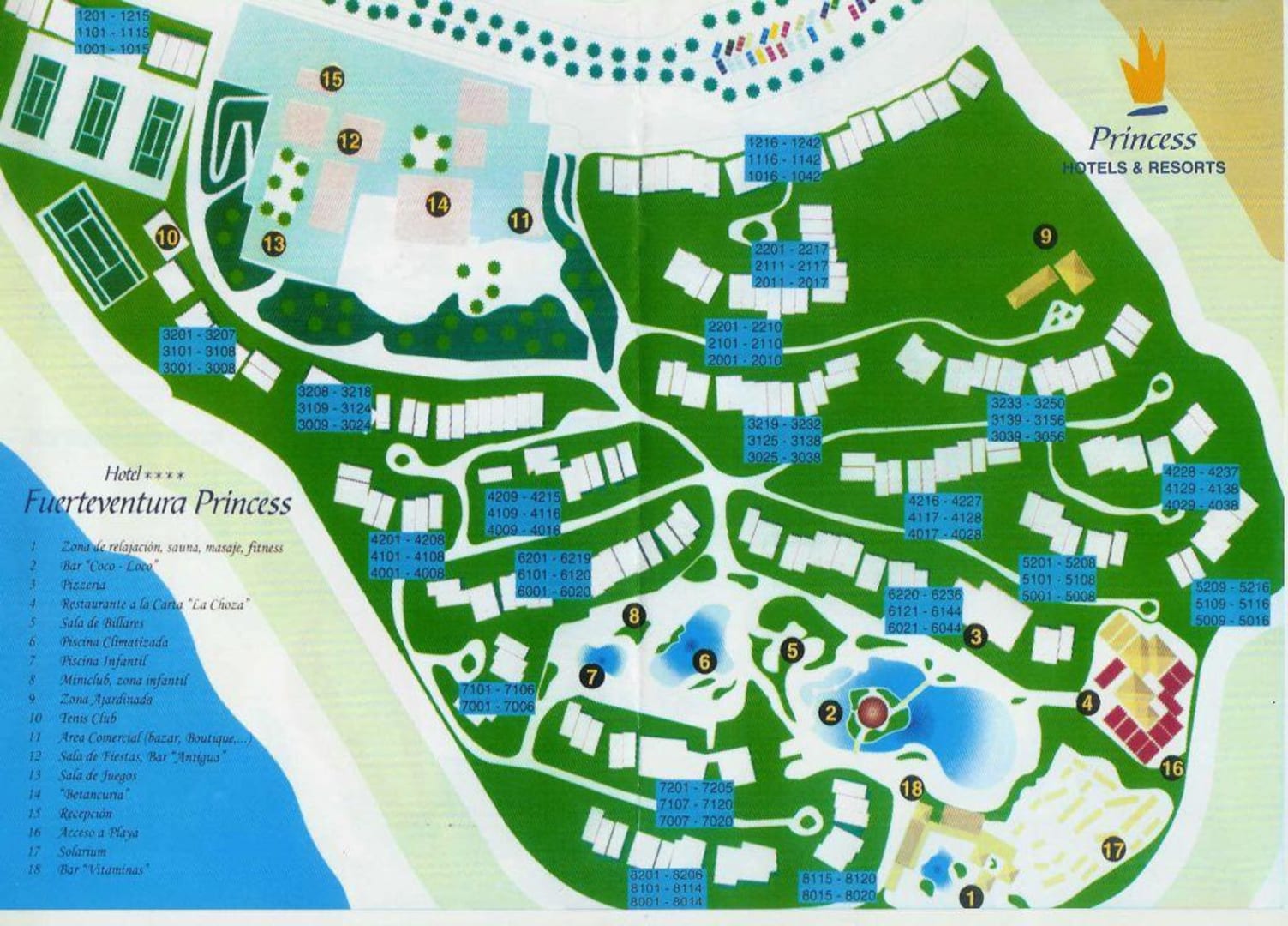 Zimmernummern des Hotels Princess