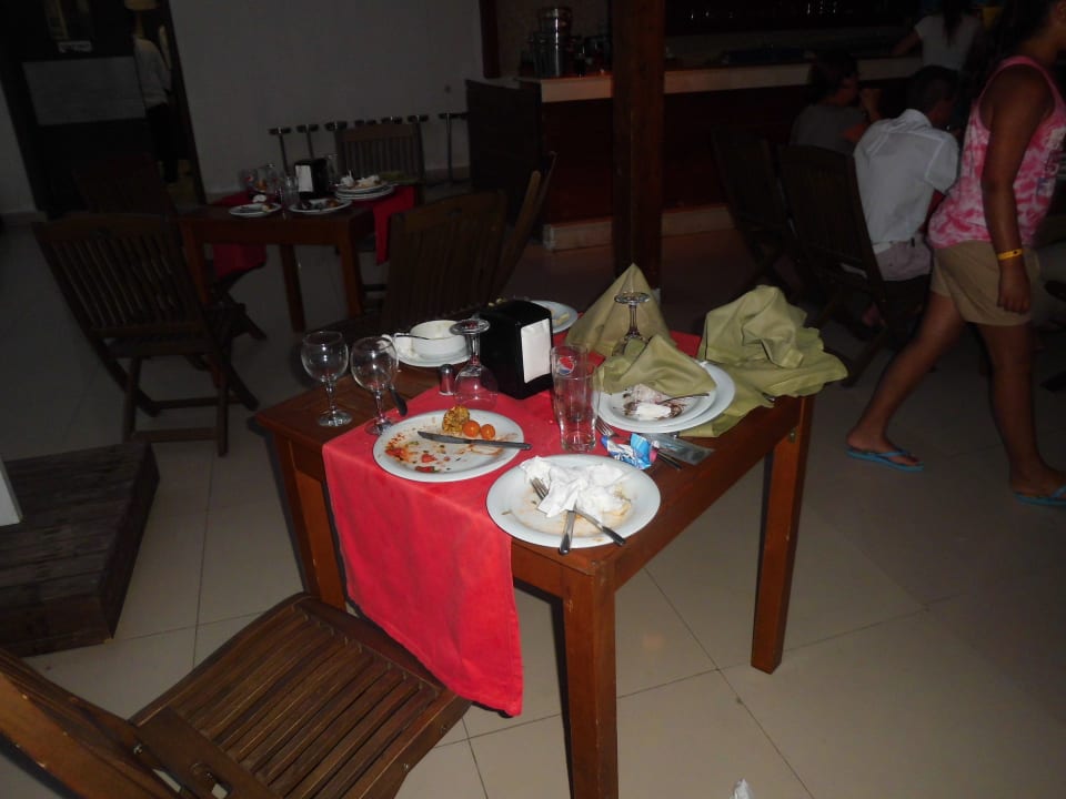 Wenn man die Berge an dreckigem Geschirr weggeräumt hat, konnte man sich zum Essen setzen. Das Abwischen der Tische war auch nicht nötig. Diese klebten eh immer....