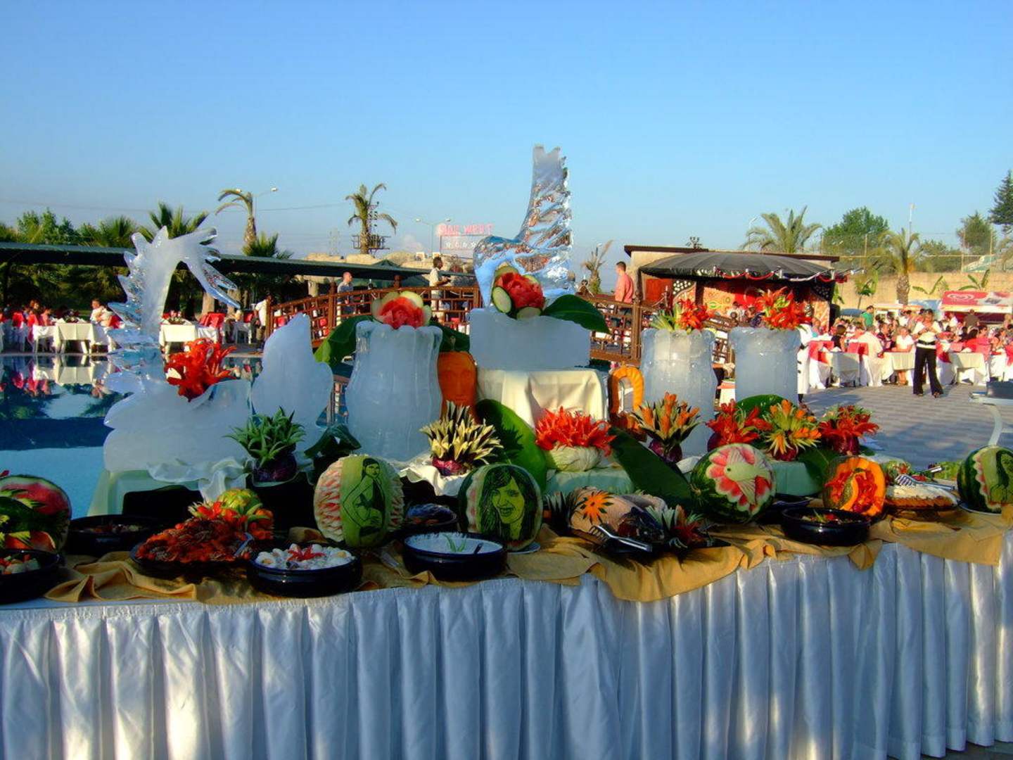 Eisfiguren am Kalten BuffetEisfiguren im Rahmen des Galaabends am Buffet vor dem Pool