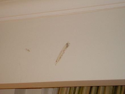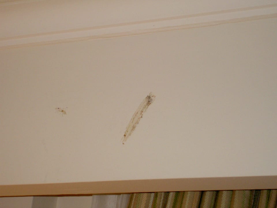 Fleck an Wand!!Oberhalb vom Vorhang großer brauner Streifen, nicht zu übersehen!