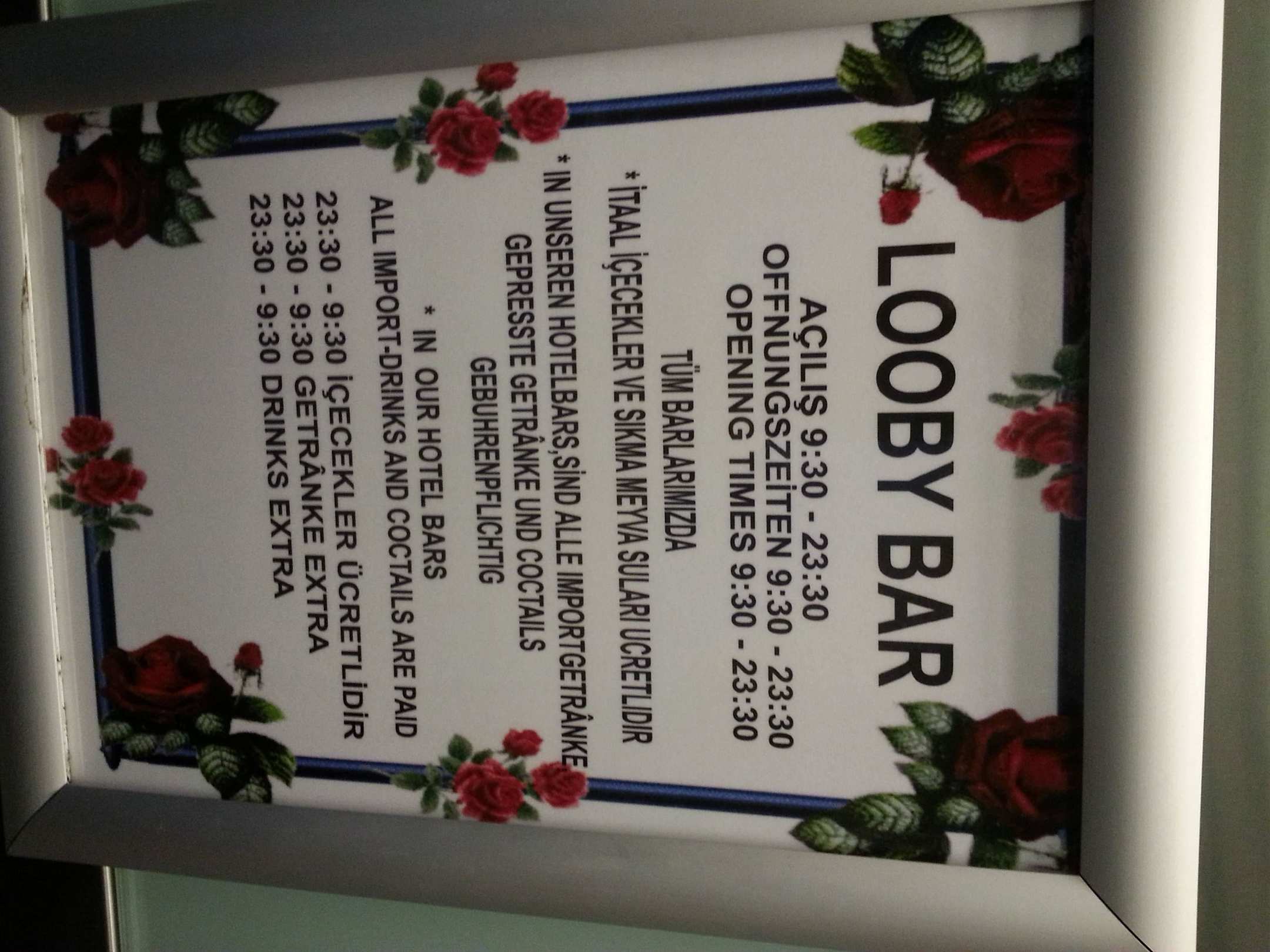 Öffnungszeiten der Bar, bitte Aufpreis beachten