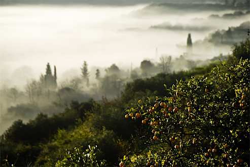 Morning view from the balcony, facing the garden.