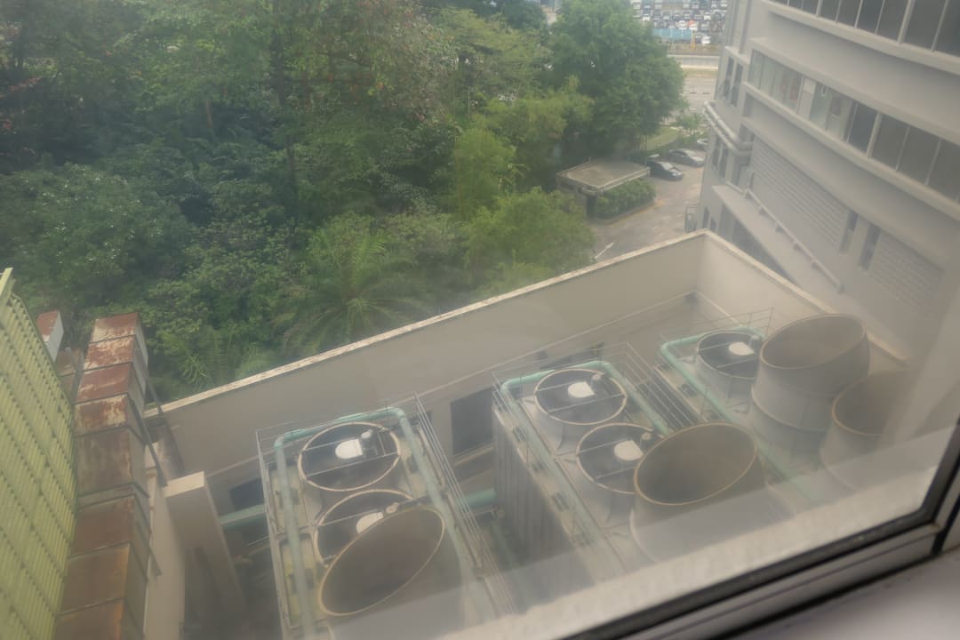 6. Etage, genau über den Lüftern, also laut