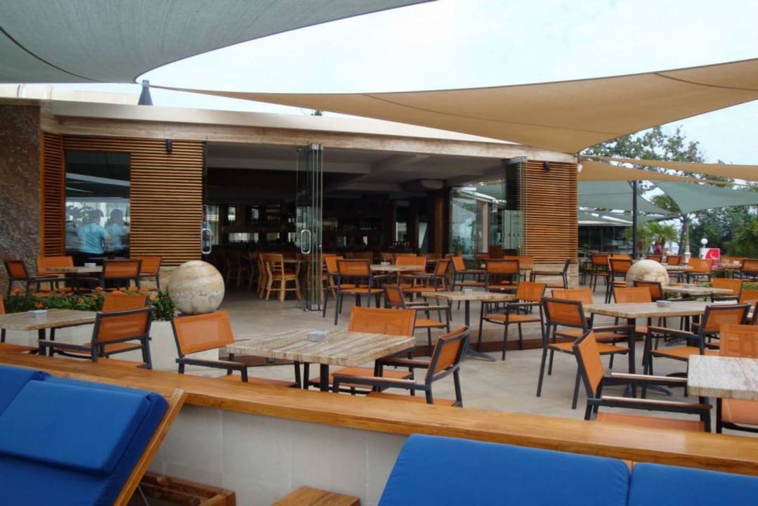 Hotel-Restauranthier gibt es auch das Frühstück. Das Restaurant hat einen schönen Blick auf Strand und Meer