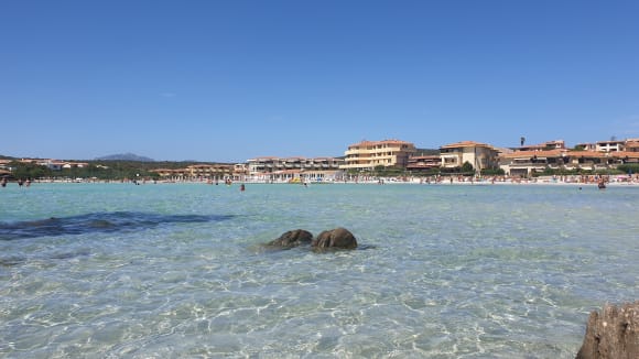 Unglaublich sauberer Strand mit schneeweißen Sand, der tatsächlich bei strahlendem Sonnenschein in smaragdgrünen bis azurblauen Farbenspielen schimmert.