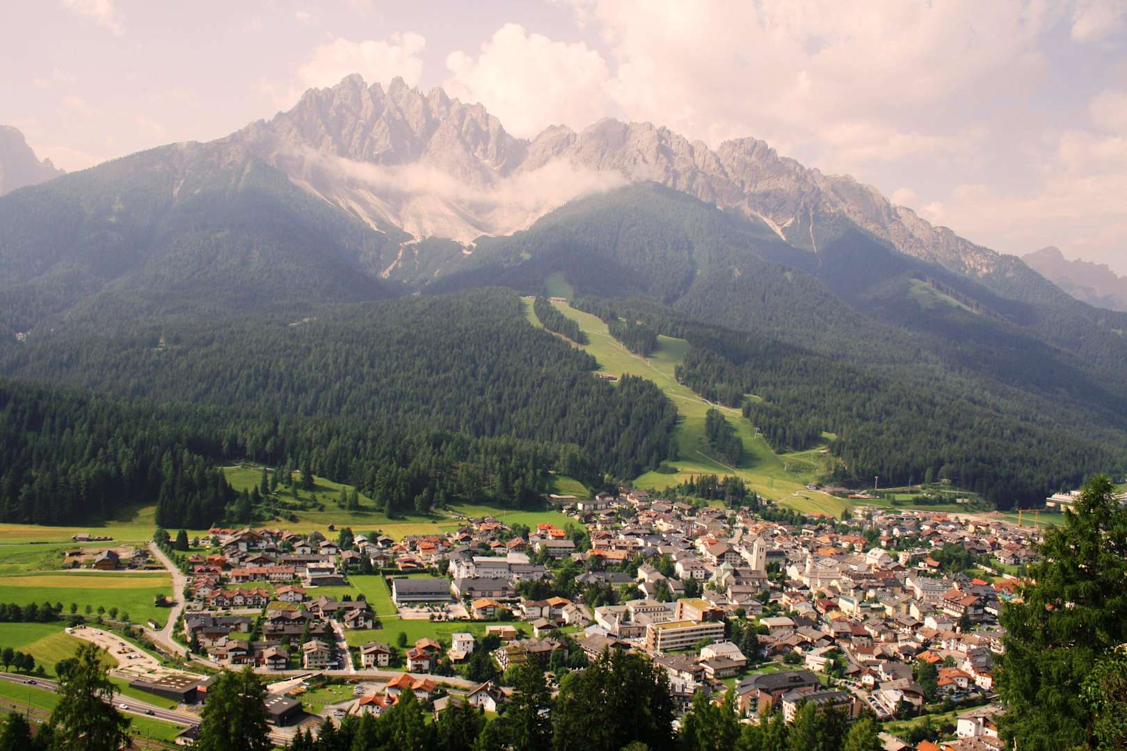 Blick vom Gadenhof auf Innichen und zum Haunold.