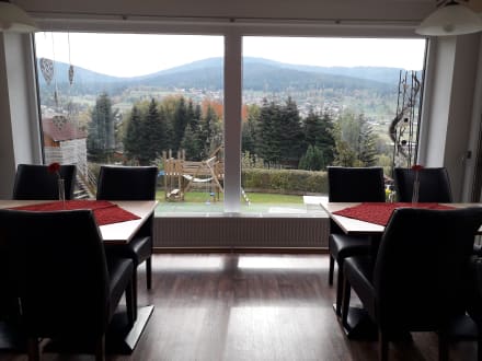 Blick vom Speiseraum in die Gartenanlage