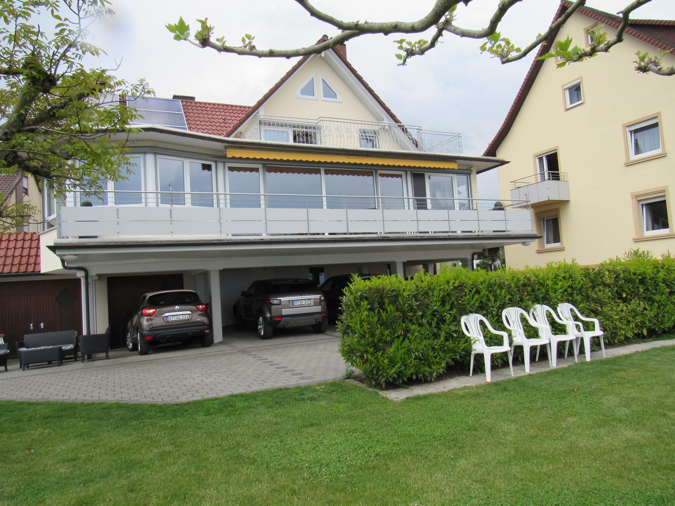 Parkplatz und Terrasse mit Seeblick