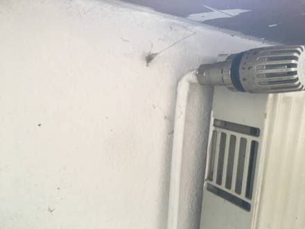 Heizung in der Küche ... zahlreiche Spinnweben, garniert mit Staub & Dreck