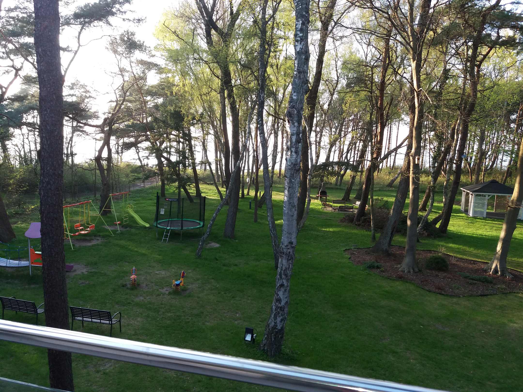 Blick vom Balkon Richtung Garten und Ostsee