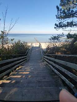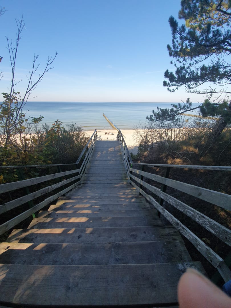 StrandTreppe zum Strand direkt beim Hotel. Ein paar hundert Meter Richtung Ort gibt es einen flachen Zugang zum Strand für Kinderwagen und Rollstuhl
