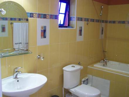Badezimmer mit Dusche und Badewanne