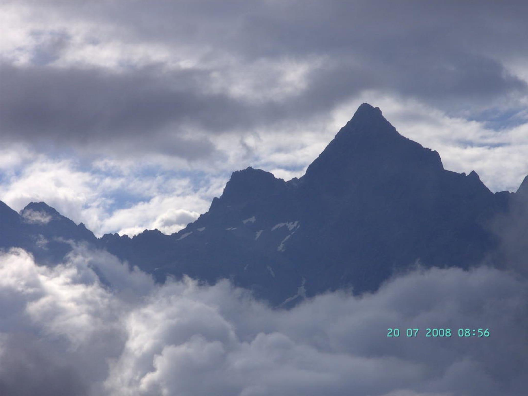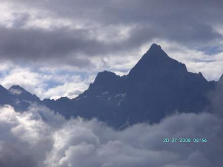 Ansicht Richtung Ötztal, der Acherkogel morgens nach einer regnerischen Nacht