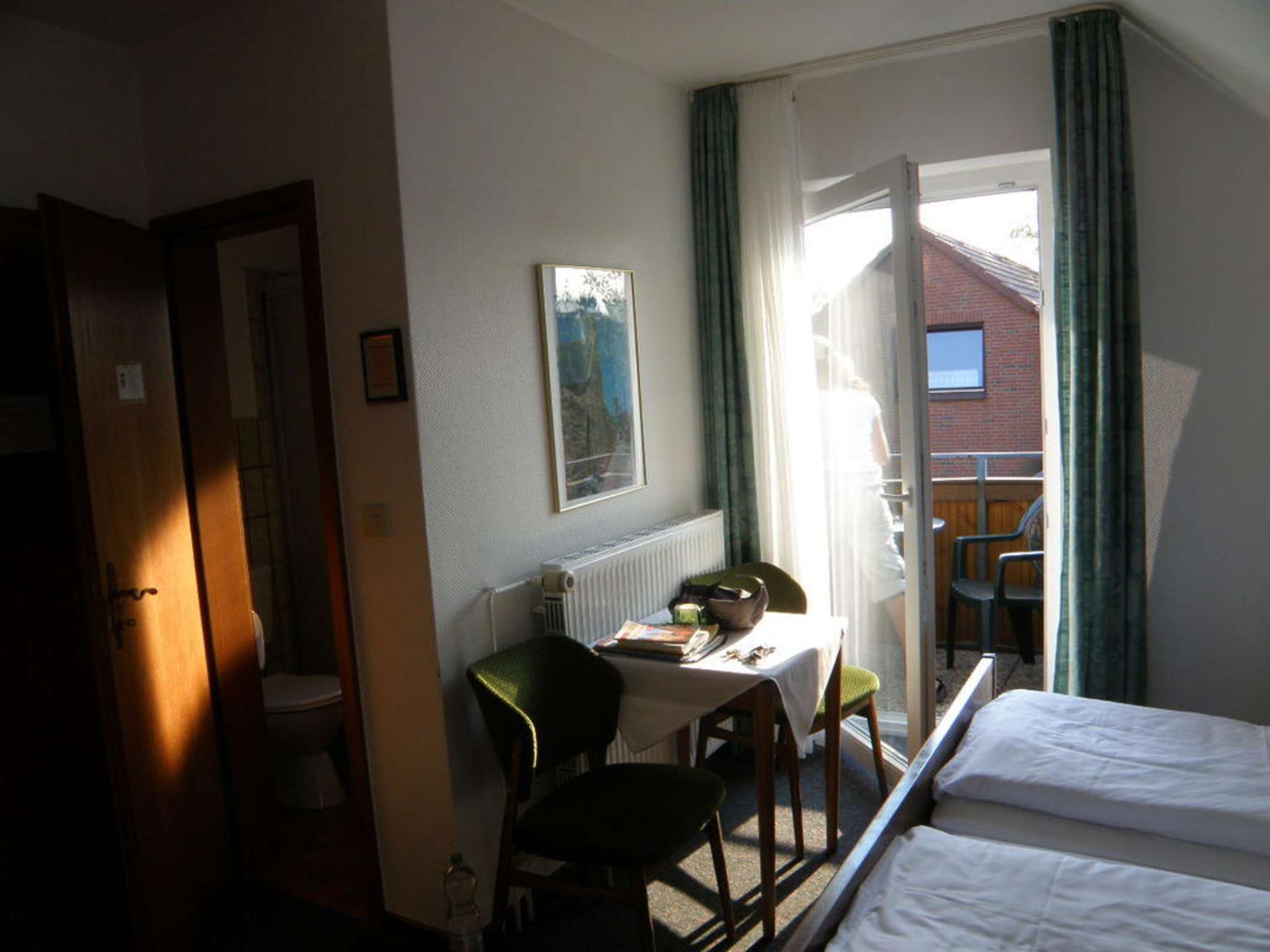 Blick zum BalkonVon der Morgensonne geweckt und in der Abendsonne gemütlich den Tag ausklingen lassen....